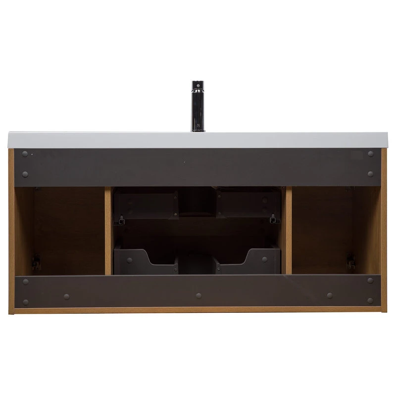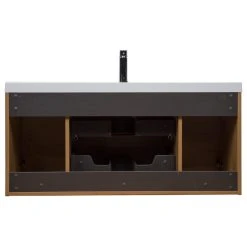 - Vanity is fitted with soft closing drawer slides and door hinges