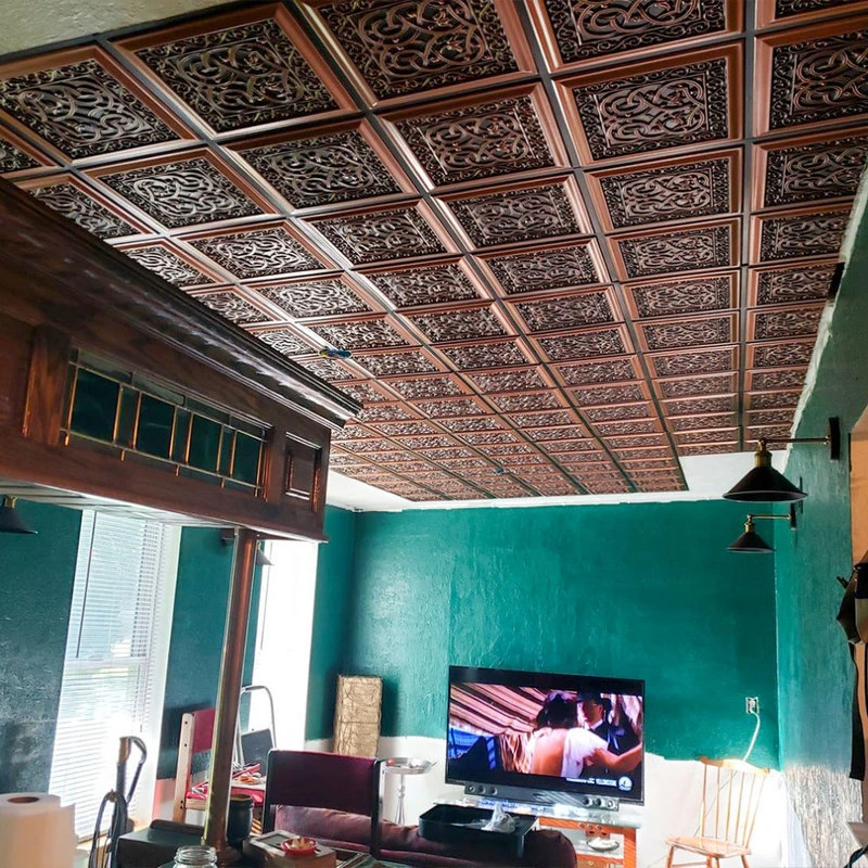 Decorative Ceiling Tiles, Inc. Lover’s Knot, Faux Tin Ceiling Tile, Glue Up, 24″x24″, #231, Antique Copper