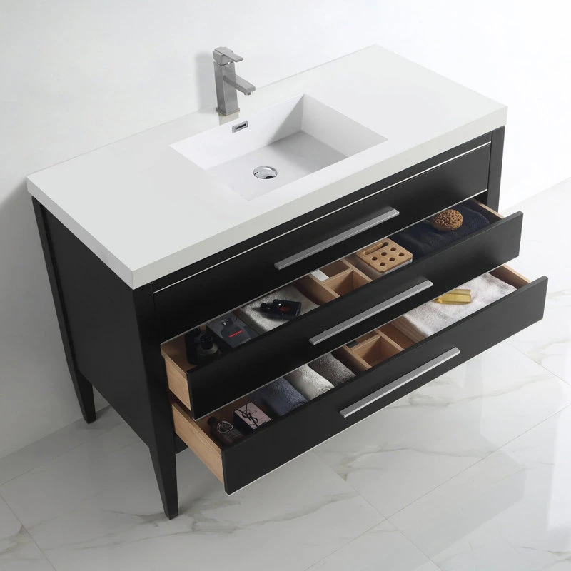 Dowell K&B Supplies Grace 48″ Single Bathroom Vanity In Black With White Resin Top