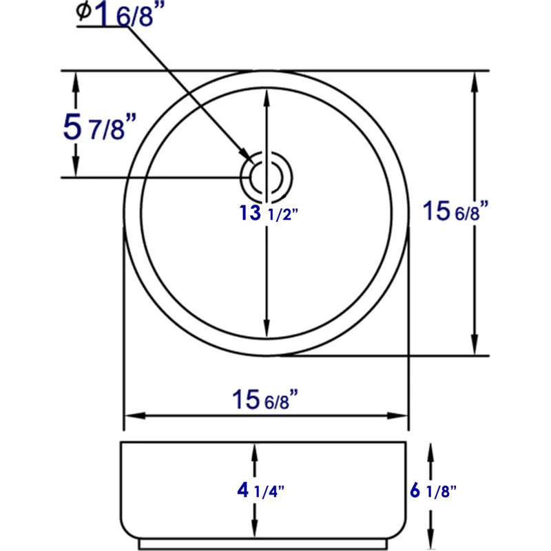 16″ Round Ceramic Above Mount Bathroom Basin Vessel Sink