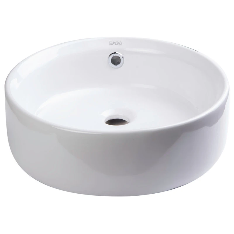 EAGO 16″ Round Ceramic Above Mount Bathroom Basin Vessel Sink