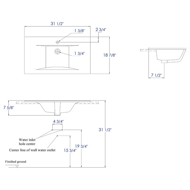- 1 3/8 diameter predrilled hole for easy single hole faucet installation.