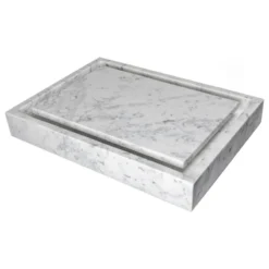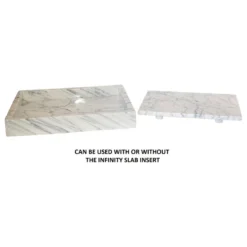 Infinity Pool Stone Sinks is a wonderful interpretation of a modern design trend. The infinity pool stone sink is made of two unique pieces, the sink base (which can be used by itself, as a regular rectangular stone sink) as well as the infinity insert which is a raised slab that sits inside of the sink base. This model is made of polished carrara white marble, which provides a pure white base with dark gray veins.