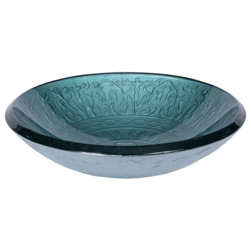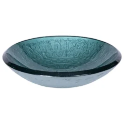 Eden Bath – Vessel Sinks Eden Bath EB_GS03 Teal Glass Bathroom Vessel Sink With Embossed Pattern