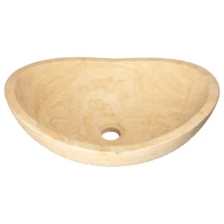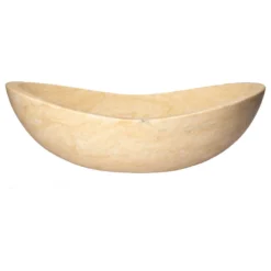 Made from Beige Travertine, the unique sloping lines and boat shape of the sink give it an aesthetic that works well in modern spaces as well as bathrooms where nature is the focus.