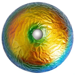 The Eden Bath Small True Planet Above Counter Round Tempered Glass Vessel Sink features a bright, multi-colored finish hand painted by skilled artisans in a 14 inch size perfect for smaller spaces. Each sink has slight color variations with vibrant blue, orange and yellow colors blending into each other. Each sink is made of high quality tempered glass. We recommend that you also purchase a mounting ring and drain with your glass sink in the same finish of your faucet.