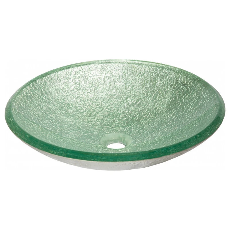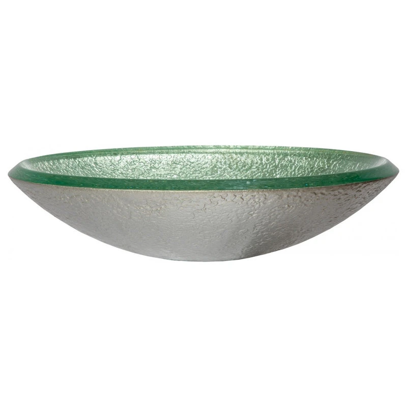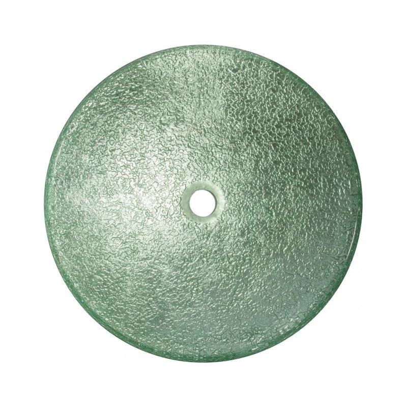 The Eden Bath Pale Green Pearls Above Counter Round Glass Vessel Sink features a delicate pattern visible on both the exterior of the sink and in the bowl. This large sink is a beautiful pale green color and is made of high quality tempered glass. We recommend that you also purchase a mounting ring and drain with your glass sink in the same finish of your faucet.