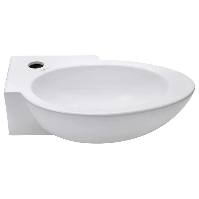 Elite Sinks Elanti Collection Left-Facing Porcelain Wall-Mounted Oval Corner Sink, Right-Fac
