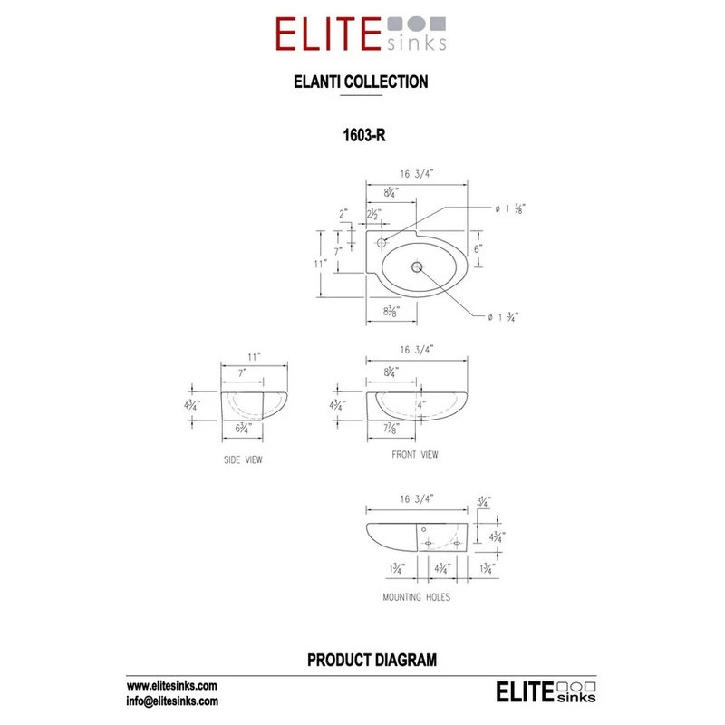 Be the first to review “Elite Sinks Elanti Collection Left-Facing Porcelain Wall-Mounted Oval Corner Sink, Right-Fac” Cancel reply