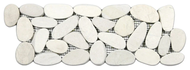 Each pebble is carefully selected and hand-sorted according to color, size and shape in order to ensure the highest quality pebble tile available. The stones are attached to a sturdy mesh backing using non-toxic, environmentally safe glue. Because of the unique pattern in which our tile is created they fit together seamlessly when installed so you can’t tell where one tile ends and the next begins!