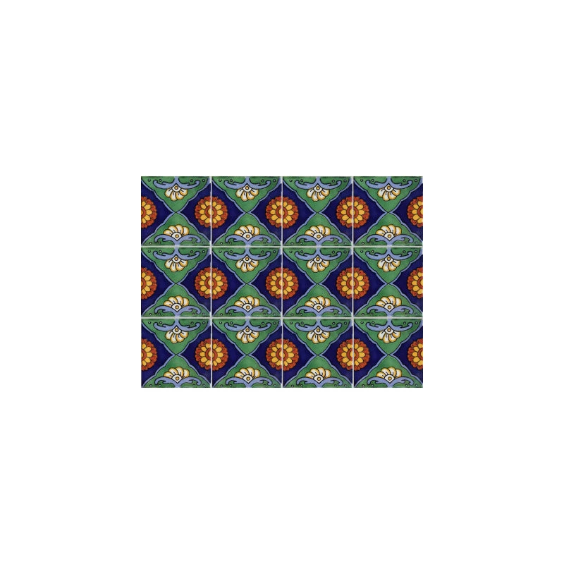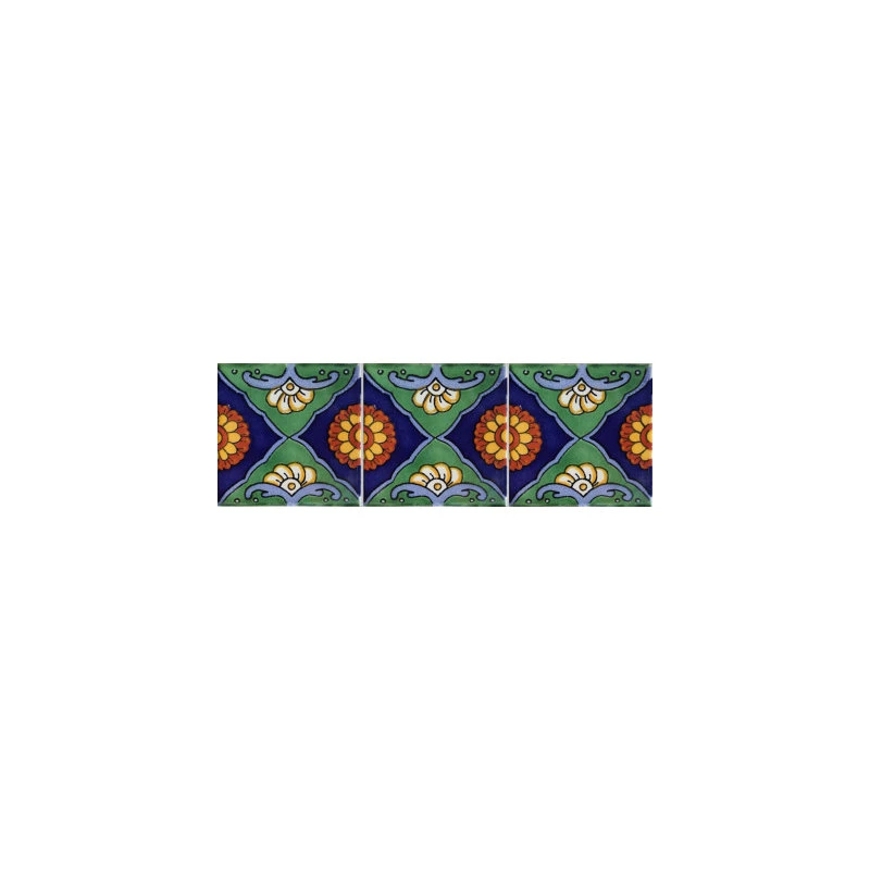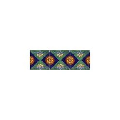 This is a nice pattern tile. Mostly dark green and cobalt blue. It contains some light blue accents and also some terracotta spots. It will be a nice addition to any wall or a border accent. The second picture shows a pattern when more than one tiles are put together.