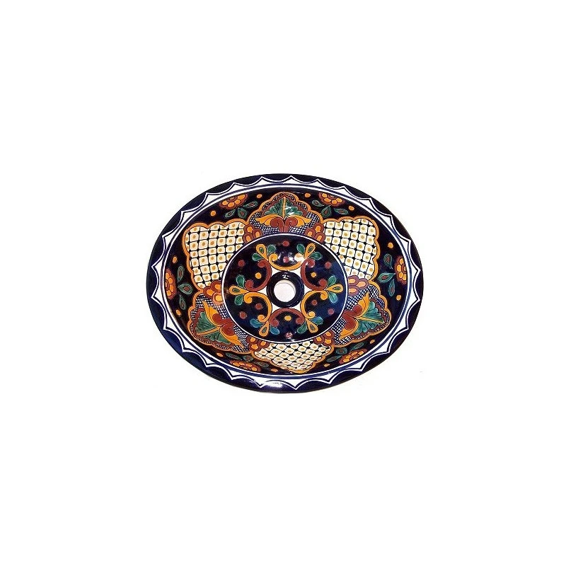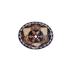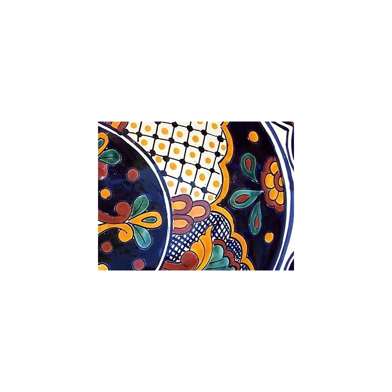 This bathroom sink is by far the most colorful and detailed Talavera ceramic sink we have in our website. You will be delighted with the amount of detail the artist put on it! It has a dark blue border, followed by white band around the sink border. The central part is mostly blue cobalt. A very sophisticated pattern which is hard to explain in words, the picture is worth hundred words, check it by yourself. It has an overflow system.