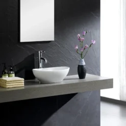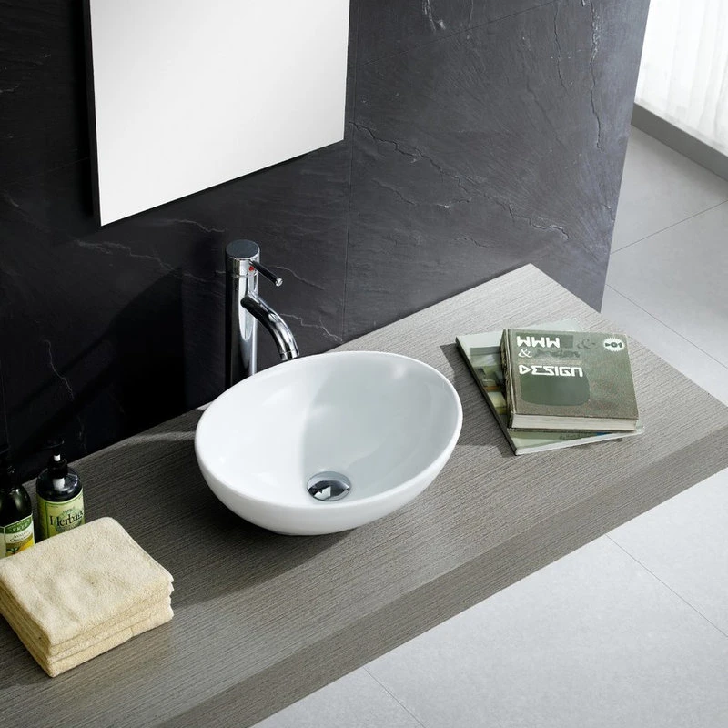 Bring added elegance to your bathroom with this Fine Fixtures modern vessel sink. A welcoming addition to any bathroom or powder room, Constructed of durable and stain resistant vitreous china, this oval sink features sleek, refined sides and its rounded appearance provides it with a modern and fresh look. Its simple yet fashionable design is sure to leave a lofty impression on your bathroom.