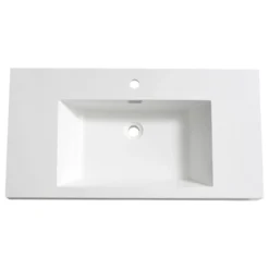 This lovely white acrylic Fresca Valencia 42″ White Integrated Sink/Countertop is designed for durability and style. Equipped with an integrated rectangular overflow and a single hole faucet mount, this sink is ready for the faucet of your choice (sold separately). It pairs beautifully with a Fresca Modern Bathroom Cabinet.