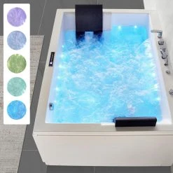 Stylish and functional, this luxurious bathtub offers both a relaxing whirlpool and a blissful bubble massage hydrotherapy. The 20 air jets push air through the water to completely surround your body in a blissful cushion of massaging bubbles. And 18 whirlpool water jets deliver a powerful hydromassage, relaxing and invigorating. With unparalleled technology, it boasts a chromatherapy LED lighting system to create a moody atmosphere. For added visual fun, a slim waterfall opening inside the tub delivers an attention-grabbing cascade when the bathtub filled. Update your bathroom with this stunning bathtub and indulge yourself in a state of extreme relaxation and tranquility!