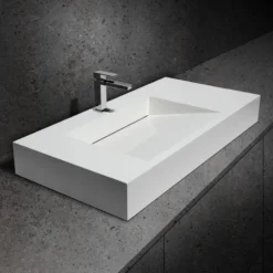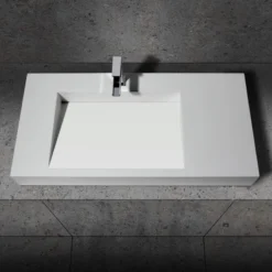 Modern and elegant, this matte white resin stone sink is a perfect addition to both commercial and residential bathrooms. The clean design features a gentle slope that leads water into the drain while presenting beautiful visual effect. This sink is durable, easy to clean and stain resistant due to the stone resin construction. And wall-hung feature allows installation at a custom height, which makes it ideal for small bathrooms or tight powder rooms. Coordinate with a single hole faucet for a complete, luxurious look.