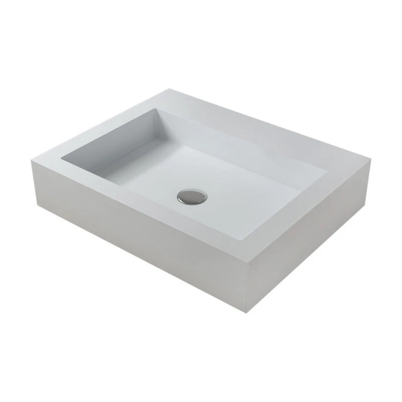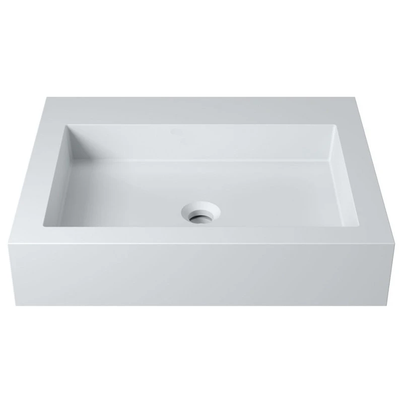 Infurnituer Polystone Square Vessel Bathroom Sink, Matte White, No Faucet