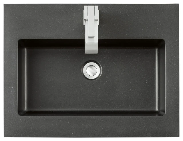 - Solid surface vanity top with a single basin sink, cabinet sold separately