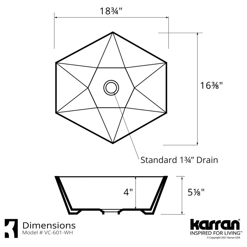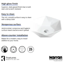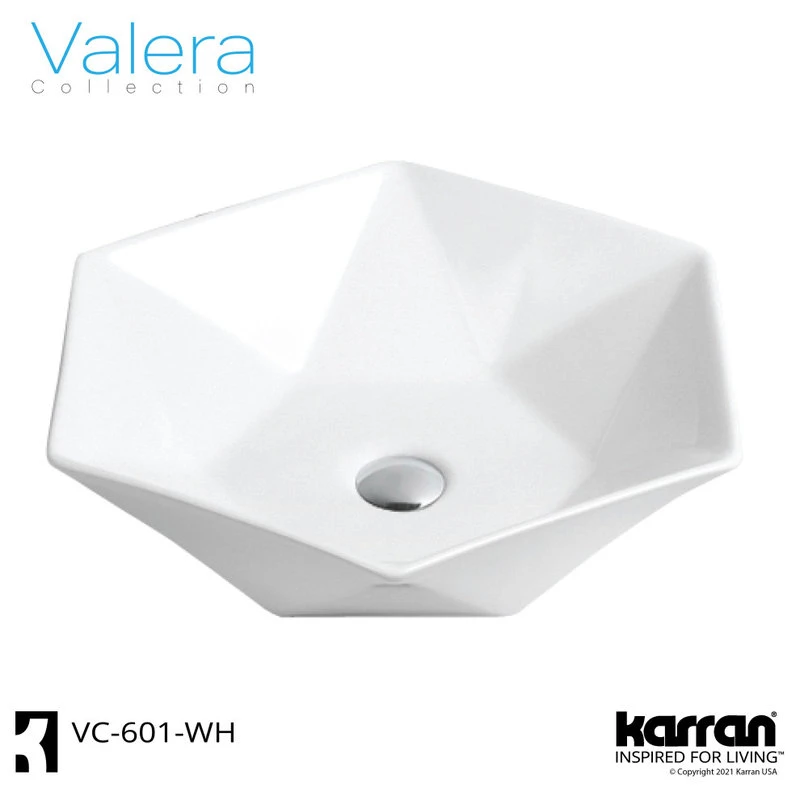 Make a statement in your bathroom with this above-counter vessel sink. Its hexagonal shape epitomizes modern, geometric design and dramatic eye-catching style. Its high-gloss, double-glazed finish provides a durable, resilient surface that is easy to clean and care for.