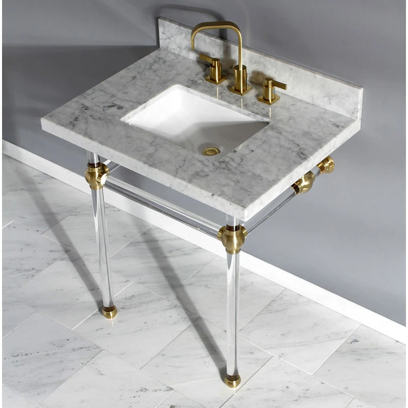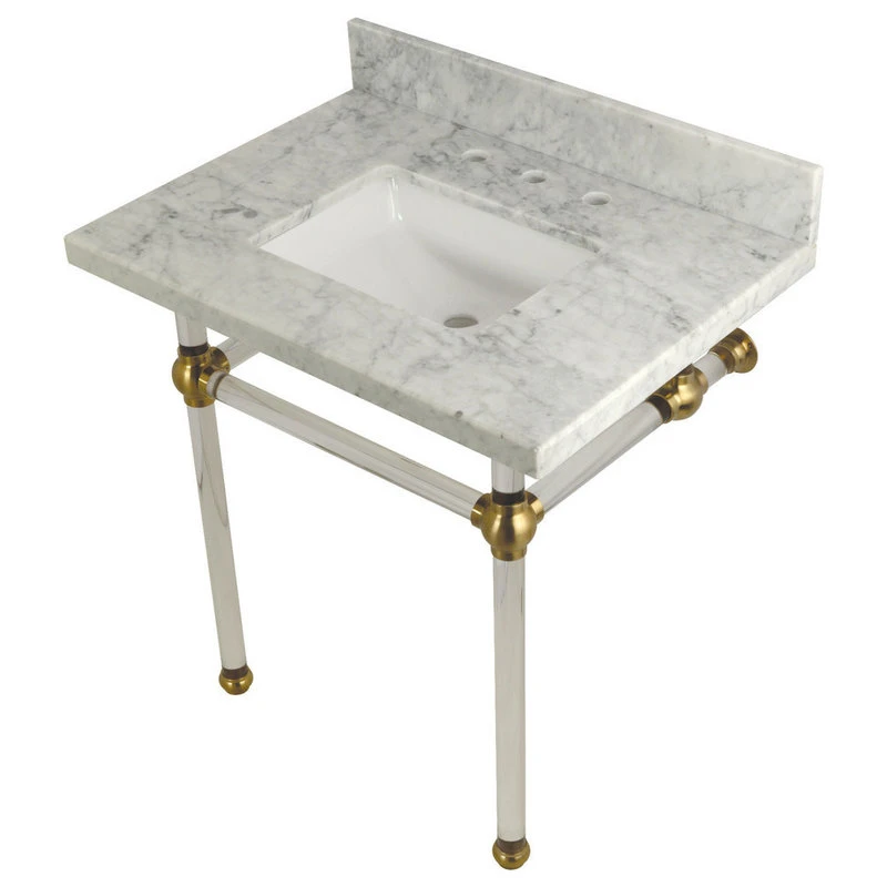 Kingston Brass 30X22 Marble Vanity Top W/Acrylic Console Legs, Carrara Marble/Brushed Brass
