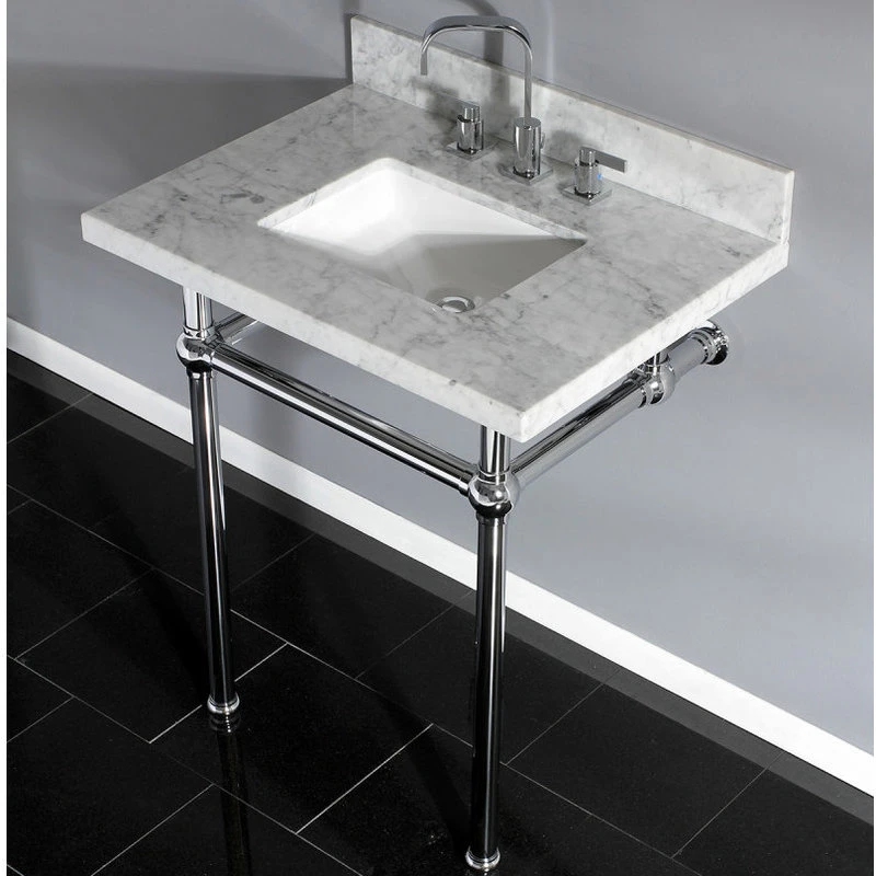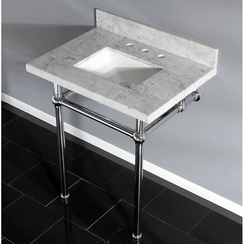 Kingston Brass 30X22 Marble Vanity Top W/Brass Console Legs, Carrara Marble/Polished Chrome