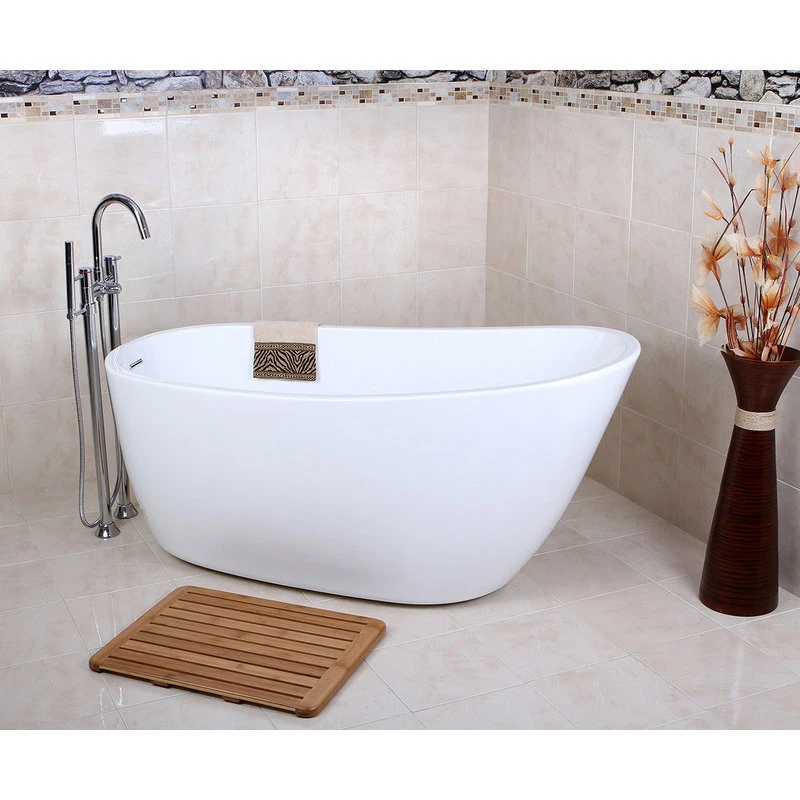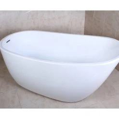 The Aqua Eden collection by Kingston Brass offers a large array of Cast Iron and Acrylic: Freestanding, Clawfoot and Pedestal Bathtubs in different shapes and sizes. This is the VTRS592928 – a Contemporary, Single Slipper, Acrylic Freestanding bathtub that is perfect for unwinding after a long and exhausting day. Manufactured from acrylic and reinforced with fiberglass, this bathtub is durable and 50% lighter than traditional cast iron material. Elegantly crafted from a durable 3-5 millimeter acrylic material, this freestanding tub is perfect for transforming an ordinary bathroom into a lavish personal spa. The gently sweeping slipper on one end provides a graceful look while fulfilling a useful purpose of ergonomically supporting your back, neck and head. Relax as you slowly recline against this tub’s sloping, raised end which was designed for comfort at its finest.
