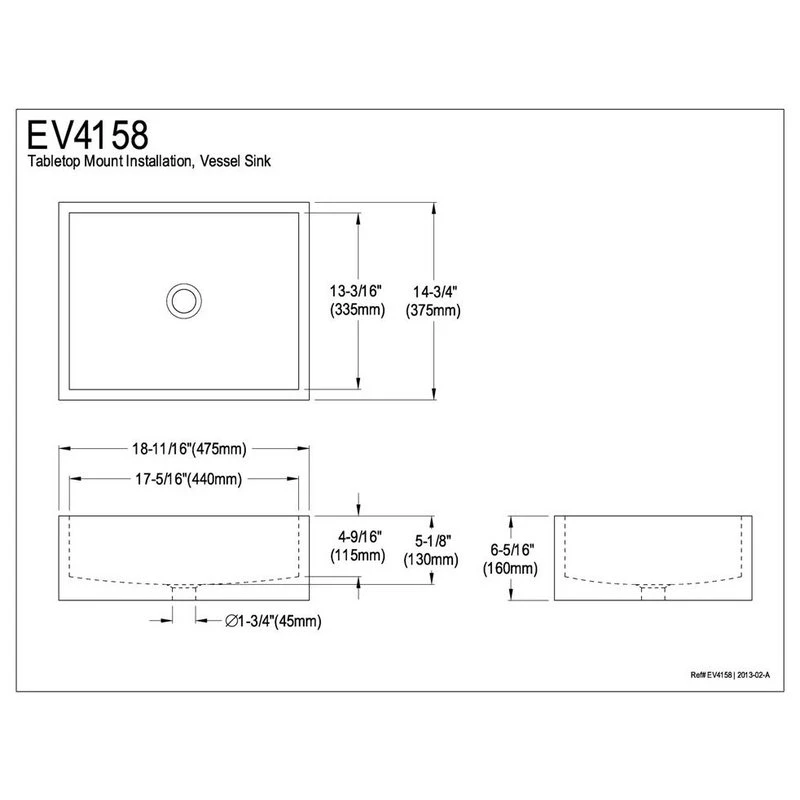 Simplistic and modest are two words that best describe this 24-3/4″ vessel sink. Its rectangular shape and spacious interior provides ample space for an exceptional wash. The transitional design is complementary with any type of decor, old or new. The sink is made from fine vitreous china for durability and reliance.Manufacturer: Kingston BrassModel: EV4158UPC: 663370065835Product Name: White China Vessel Bathroom Sink without Overflow HoleCollection / Series: ElementsFinish: WhiteTheme: Contemporary / ModernMaterial: CeramicType: SinkFeatures: Tabletop mount