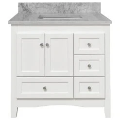 - Double-thick authentic Carrara Marble countertop imported from Italy (pre-installed on the cabinet)