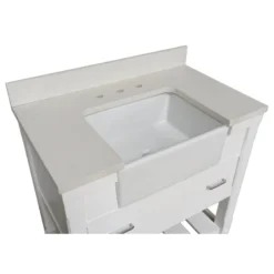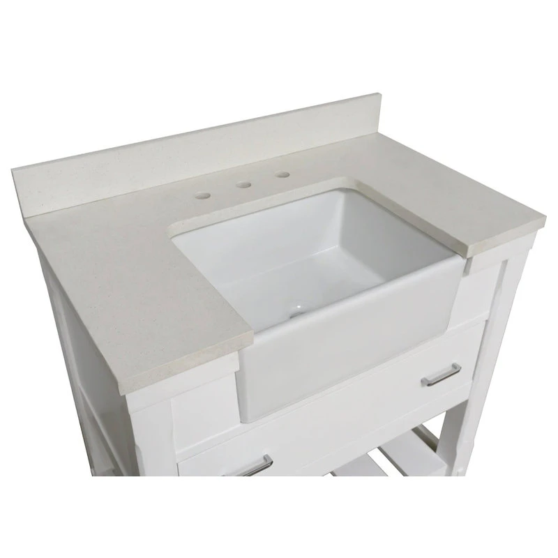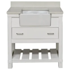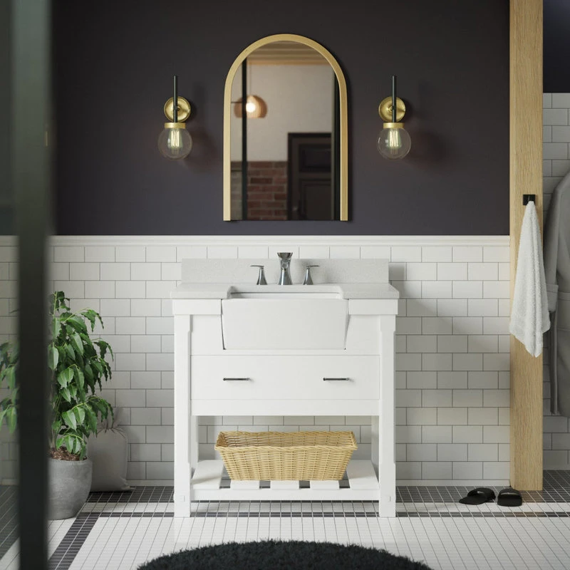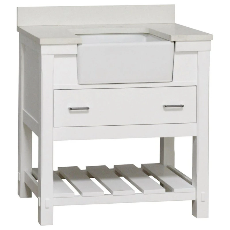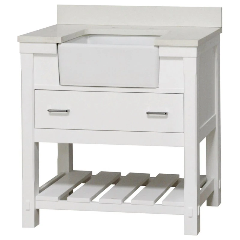 - White farmhouse apron sink (comes pre-installed on the vanity)