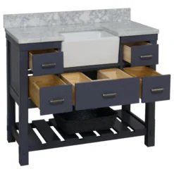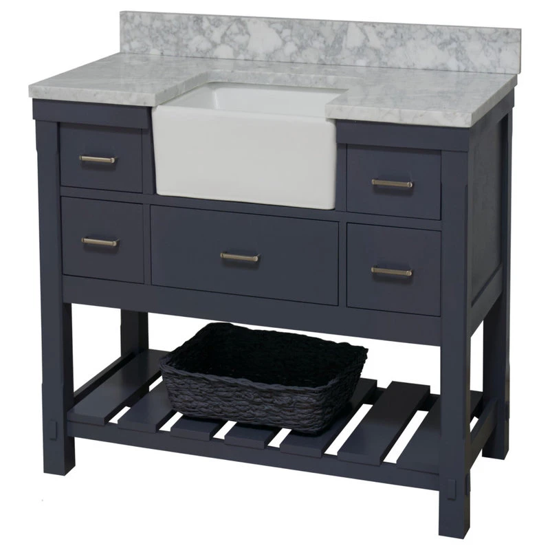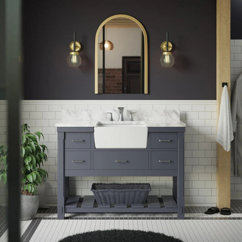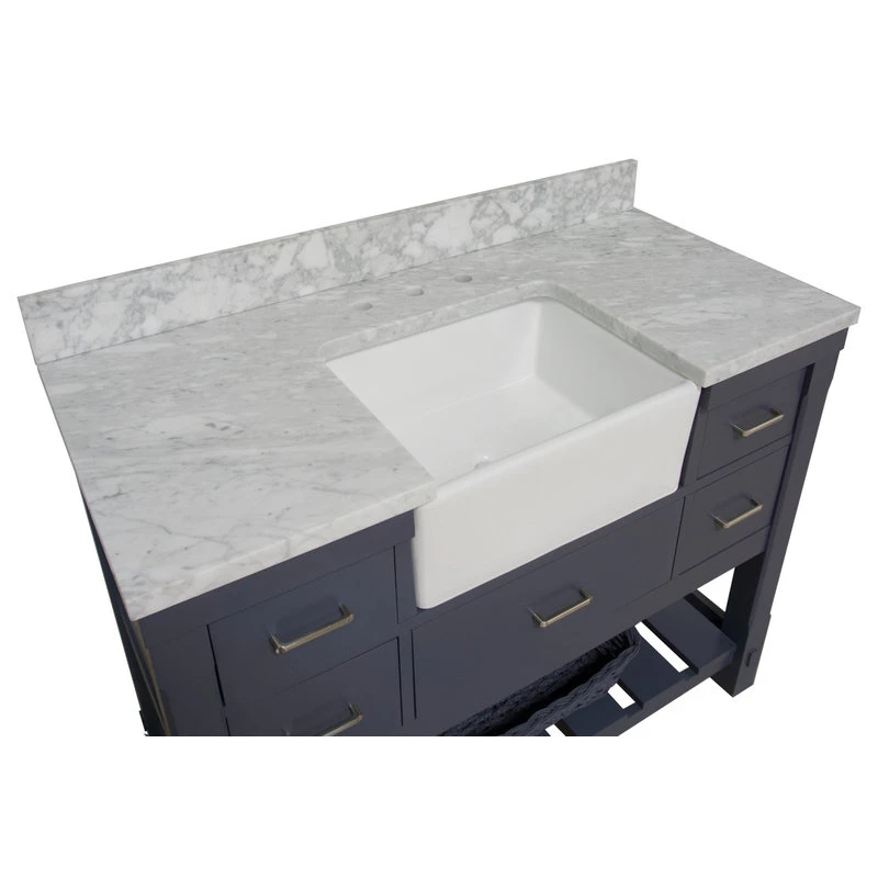 - White farmhouse apron sink (comes pre-installed on the vanity)