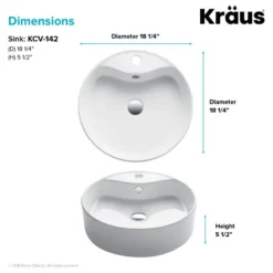 - Sink Dimensions: 18 1/4″ D x 5 1/2″ H