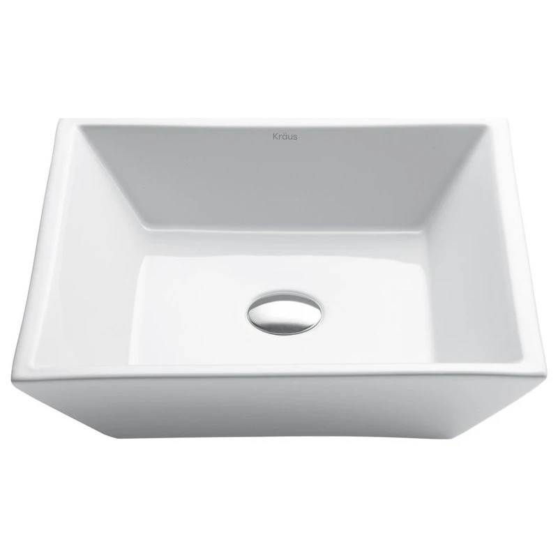 - Product: Kraus Square White Ceramic Vessel Bathroom Sink