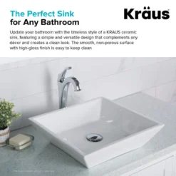 Update your bathroom with the clean look of a KRAUS ceramic sink. The versatile design features a premium baked-on glaze for a high-gloss finish that’s easy to clean, and complements any decor from classic to contemporary.