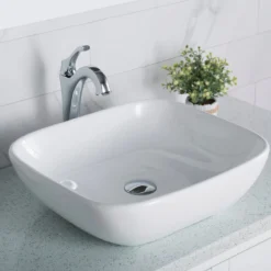 - Product: Kraus Square White Ceramic Vessel Bathroom Sink