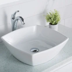 - Product: Kraus Square White Ceramic Vessel Bathroom Sink