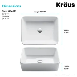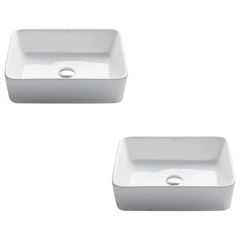 - Product: Kraus Rectangular White Ceramic Vessel Bathroom Sink (Pack of 2)