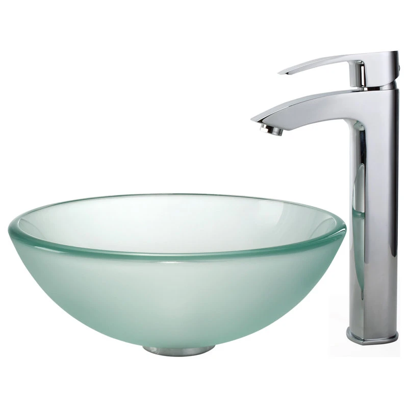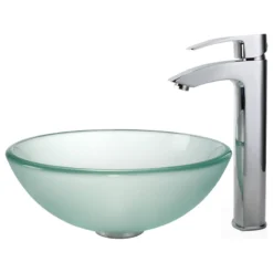 Add a touch of elegance to your bathroom with a Kraus frosted glass vessel sink. Handcrafted from tempered glass, this modern bathroom sink coordinates with a variety of decor styles. A freestanding basin design creates a dramatic look with contemporary appeal. The smooth, polished surface is beautiful and requires minimal maintenance to keep clean. This versatile sink can be installed above-counter or semi-recessed for all your stylish bathroom ideas.