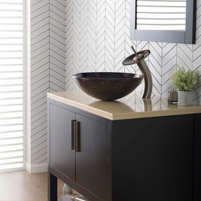 Upgrade your bathroom with a KRAUS vessel sink and faucet combo. The glass vessel sink pairs perfectly with the beautiful bathroom faucet, creating a striking centerpiece that complements any bathroom decor. Comes in a range of colors for a look that’s uniquely yours