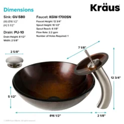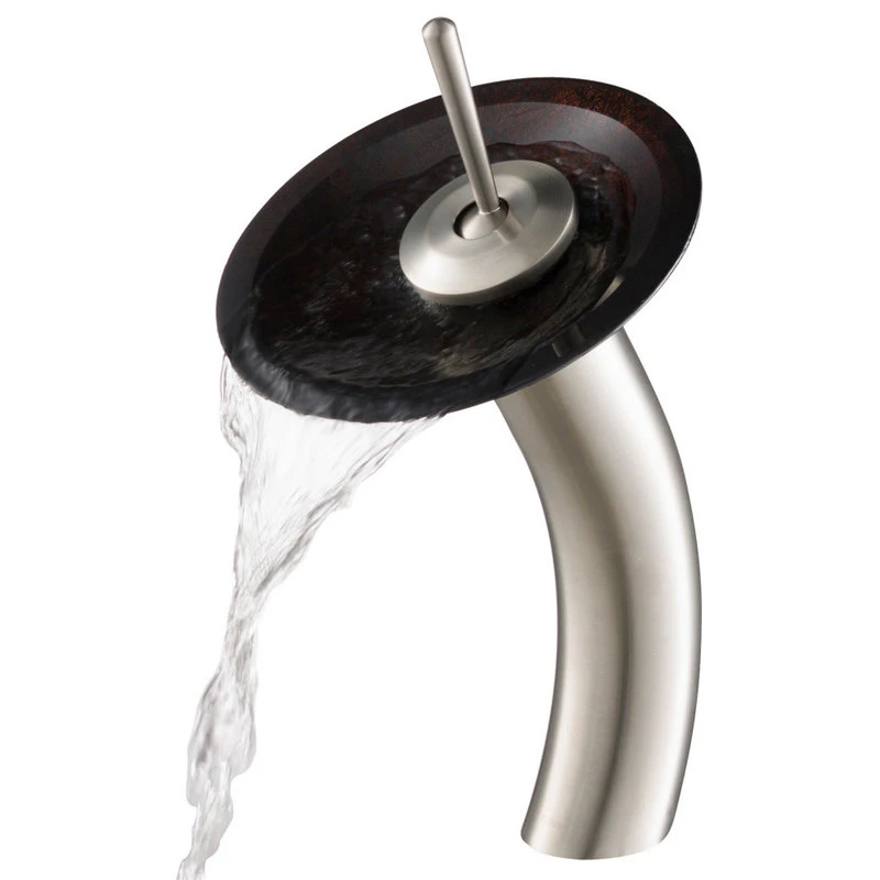 - Product: KRAUS Waterfall Bathroom Faucet with Matching Glass Disk