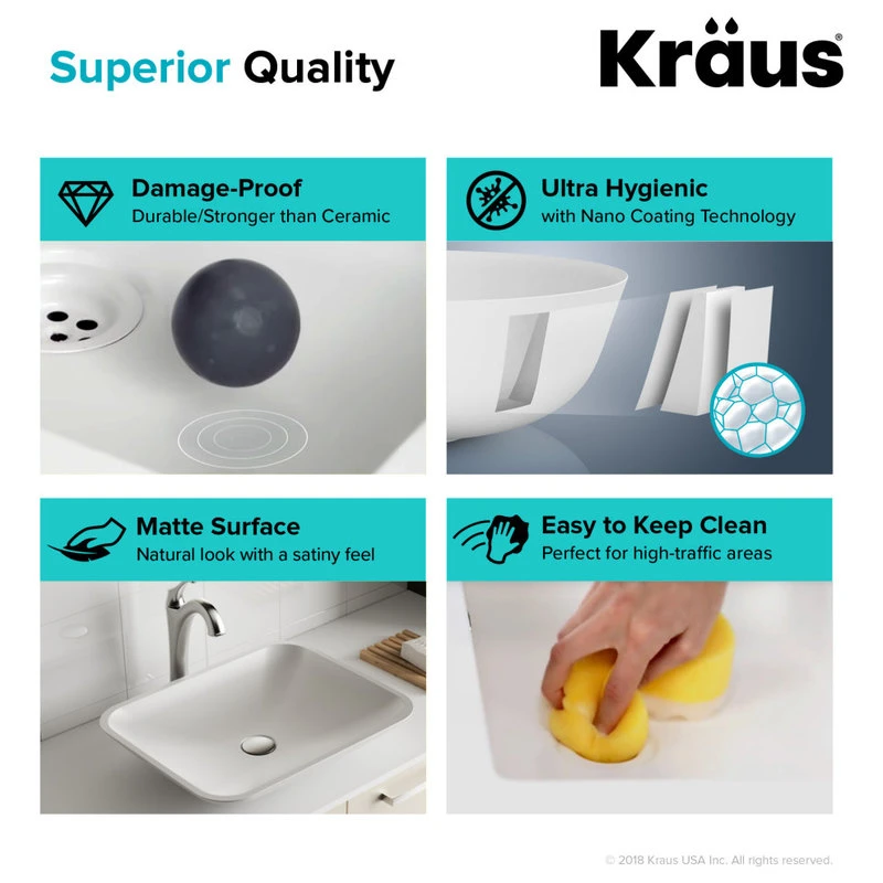 - High-Quality Matte Finish: Sink surface is smooth and soft to the touch. Proprietary finishing process ensures a consistently flawless surface.