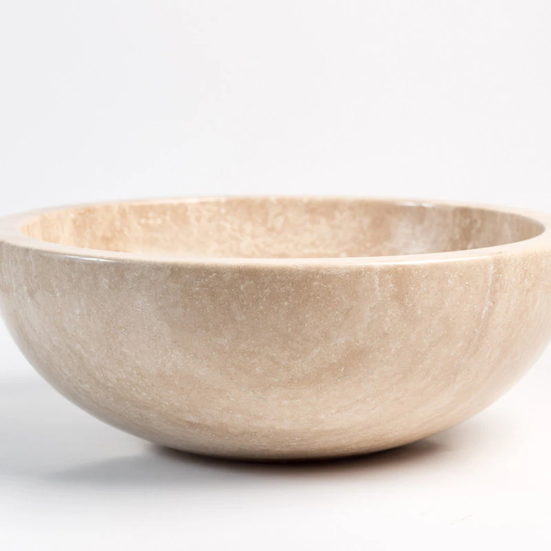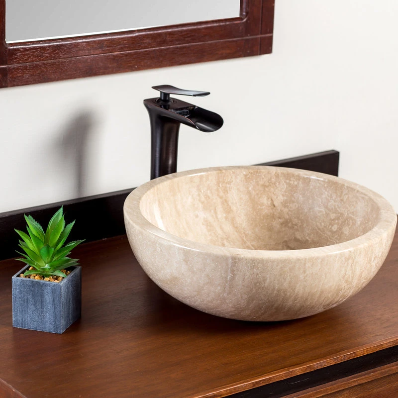 The Isidro Travertine Vessel Sink will add a touch of nature to your bathroom project. It is made from one solid piece of travertine. It has a polished interior and exterior. Each sink is unique and considered an individual work of art. Please note that there may be variation in stone color and veining.