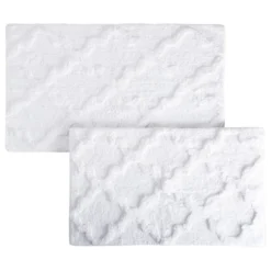 Bring life to your bathroom with the premium 100% Cotton 2 Piece Trellis Bathroom Mat Set. The Trellis pattern brings a European regal look right to your bathroom. A transparent anti-skid spray latex backing is added for keeping rugs safely in place. These super absorbent 100% cotton rugs are machine washable. Extremely plush with cut loop velour finish, this bath mat set feels as luxurious as it looks.