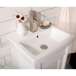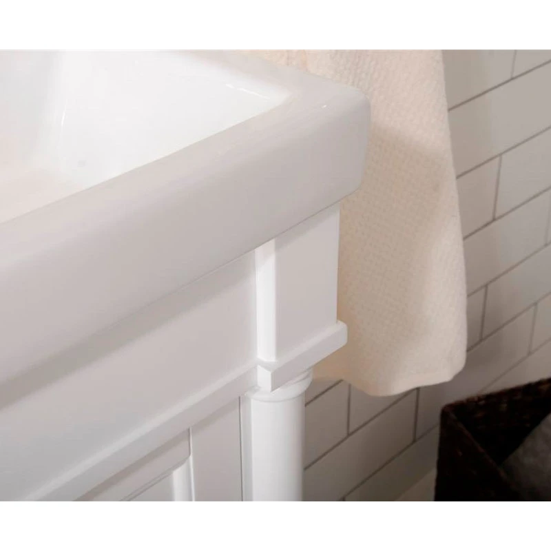 The Evarly, with its cabinet inlay, pillar detailing and fresh white finish, packs plenty of chic style into its compact stature. This single-sink vanity also features an integrated sink top and a spacious cabinet, making the most of its small size. The Evarly pairs seamlessly with transitional, contemporary and traditional designs.