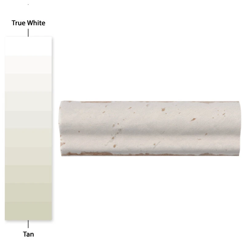 Inspired by the sun-drenched streets of Spain, the Artisan Blanco 2″ x 6-1/2″ Ceramic Moldura Wall Trim Tile brings a vintage charm to your interior. The matte white glaze is offset by imitations of scuffs and spots that mark well-loved, century-old tiles. Rich red tones from the ceramic underneath peek through, adding a worn finishing touch on this uniquely aged piece. This dimensional trim piece is great for pairing with the rest of the Artisan series. Tile is the better choice for your space. This tile is made from natural ingredients, making it a healthy choice as it is free from allergens, VOCs, formaldehyde and PVC.