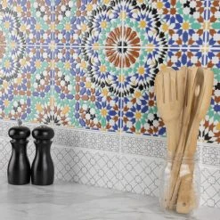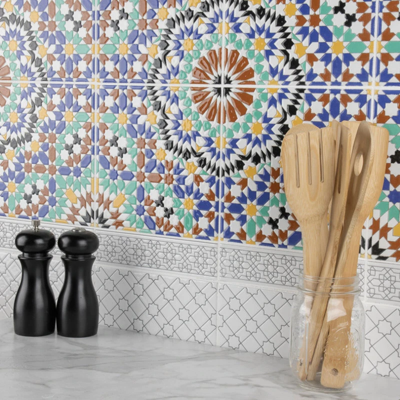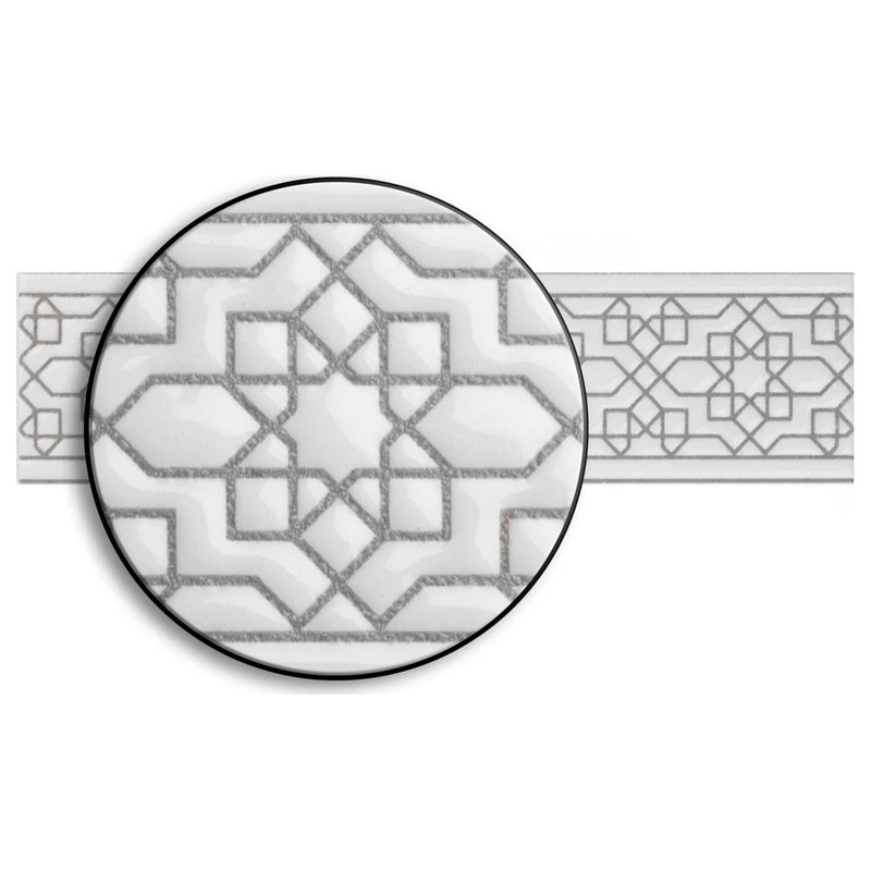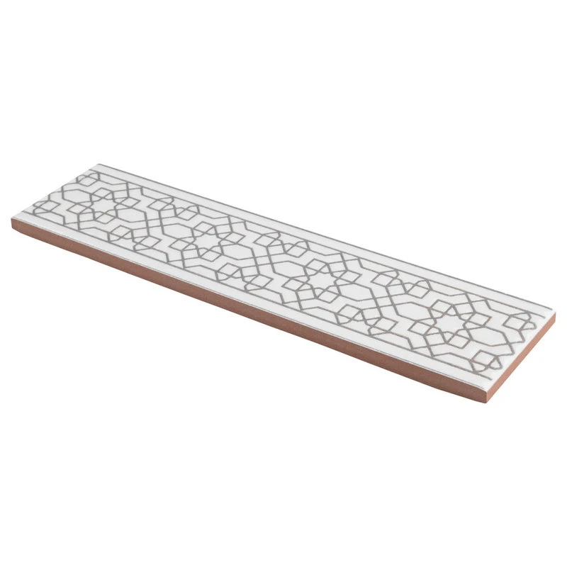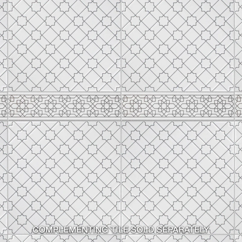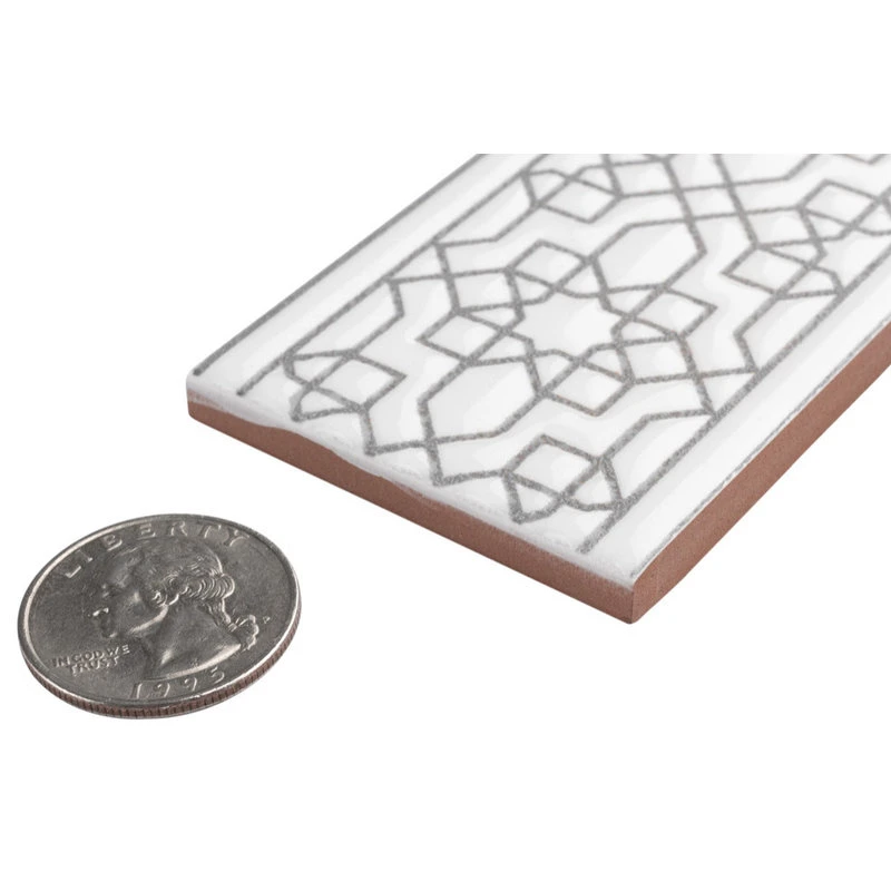 Drawing inspiration from the intricate tilework of the Middle East, our Sevillano Listello Estrella White 2″ x 7-7/8″ Ceramic Wall Trim Tile offers a stunning blend of monochromatic color and elaborate geometric shapes. Featuring a unique third-fire glaze, this trim tile has an extensive creation process, resulting in a truly exquisite look. The white shapes throughout the tile are subtly raised, offering relief throughout the surface of the tile and creating an additional sense of dimension. Intended for interior wall use, it is an ideal choice for kitchen backsplashes, bathroom showers and fireplace facades. It is great for pairing with the other Sevillano products. Tile is the better choice for your space. This tile is made from natural ingredients, making it a healthy choice as it is free from allergens, VOCs, formaldehyde and PVC.