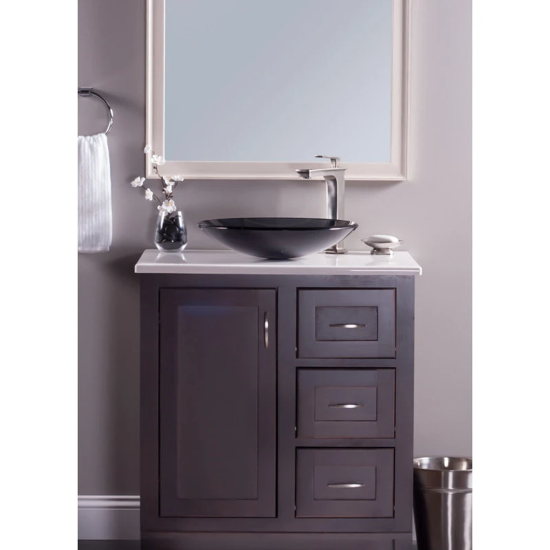 - Installation Type: Vessel (sink mounted on top of the counter via mounting rings)