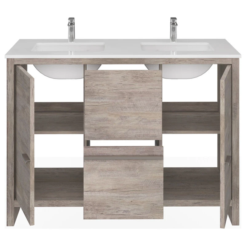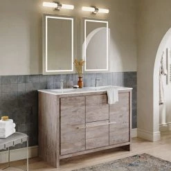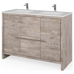 MOD Esconde Bath Vanity, Natural Wood, 48″, Double Sink, Freestanding