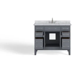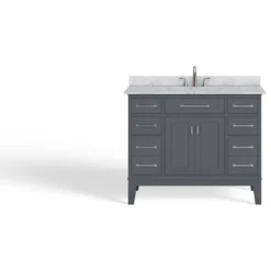 With thoughtful design details, the transitional Fairmont vanity is elegantly simple yet far from vanilla. The angular, brushed nickel hardware gives this stunner a modern edge, while the slightly flared legs add a playful twist to an otherwise traditional base. As for the gorgeous Carrara marble countertop, add on tons of storage and you’ve got yourself a showstopper that will turn any bathroom – from contemporary to coastal chic – into a functional, luxurious, get-ready retreat.