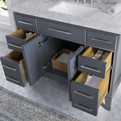- Top pre-drilled for 8″ widespread faucet