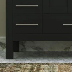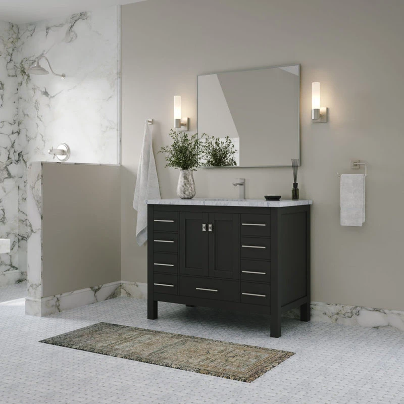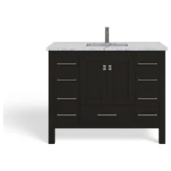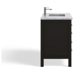 Designed to stand the test of time, the last-for years, gorgeously marbled, easy-to-clean Kennedy vanity is a prime choice for any bathroom due for a remodel. Everything from its polished, porcelain sink to the nickel-brushed hardware exudes perennial appeal. And once it’s yours, it’s yours for years to come. Its uncompromised, solid wood construction and extra-thick countertops one up everyday wear and tear, while its soft-close storage is specially designed to prevent any accidental slams.